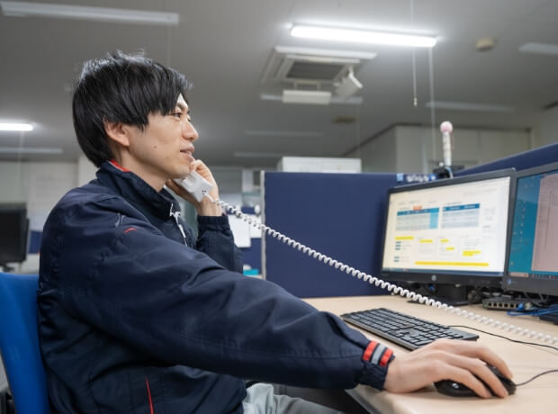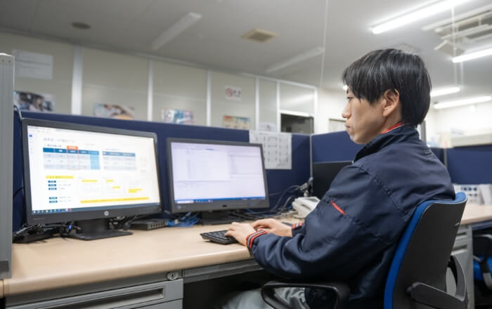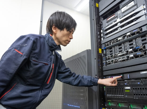 社内の情報機器のトラブルや、システムを用いた業務改善提案を行います。サーバーやネットワーク等の情報機器から生産管理システムまで、社内のITに幅広く対応しています。